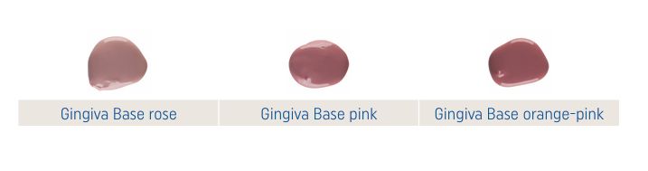 A paszták lehetővé teszik különböző íny-fenotípusok természetes reprodukálását, a halvány rózsaszíntől és narancsos-sárgától a mély lila-barnás árnyalatokig.