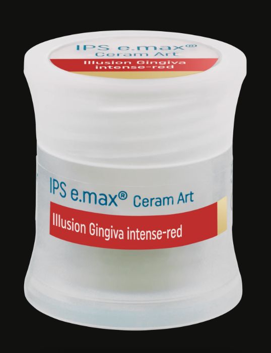 IPS e.max Ceram Art Illusion Gingiva Az IPS e.max Ceram Art Illusion Gingiva paszták új dimenziót nyújtanak az élethű mesterséges íny kialakításához. A paszták lehetővé teszik különböző íny-fenotípusok természetes reprodukálását, a halvány rózsaszíntől és narancsos-sárgától a mély lila-barnás árnyalatokig. Három újonnan fejlesztett, intenzív, kadmiummentes vörös árnyalat tovább bővíti az individualizálási lehetőségeket. A paszták önglazúrozó tulajdonsággal rendelkeznek, így nincs szükség külön glazúr égetésre.