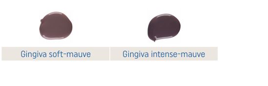 A mauve árnyalatok a sötétebb (lila-barna) ínyfenotípusokhoz,valamint az alveoláris nyálkahártya végén található intenzív lilás érstruktúrák imitációjához használhatók.